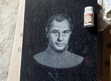 Затем, отретушировав фотографии, мы нанесли их на гранит в черновом варианте