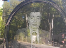 После того, как статуя была приедена в порядок, мы подправили выгравированный портрет покойного (на начальном этапе видны полосы и другие излишние элементы, образовавшиеся на гранитной поверхности).