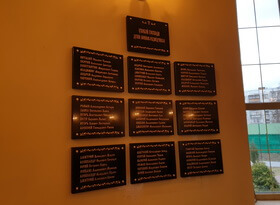 На фотографиях ниже отображено состоянии стены памяти после завершения всех работ. Таблички висят в определённом порядке, надписи легко читаются даже при небольшом освещении, а общая цветовая гамма удачно вписывается в церковный интерьер.